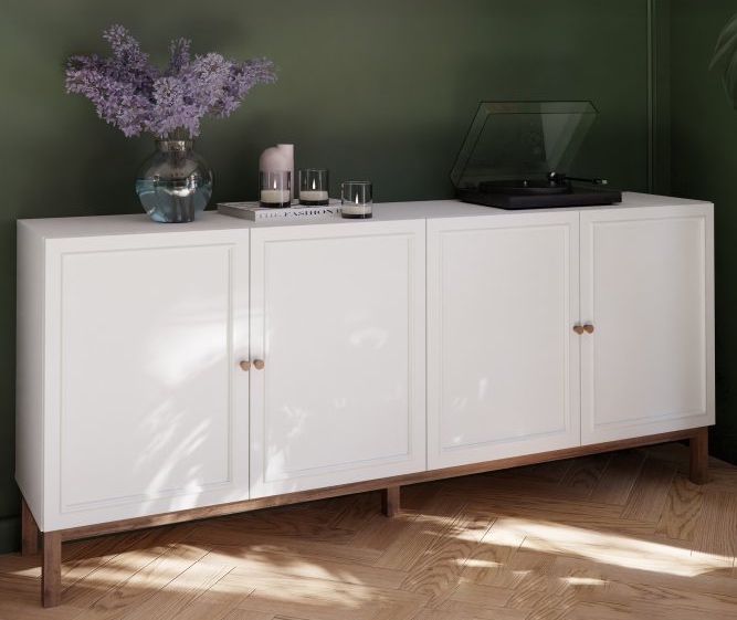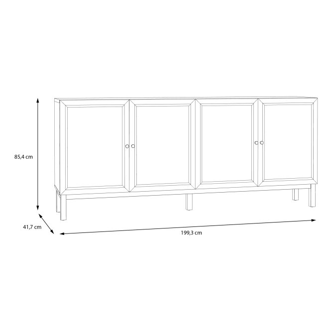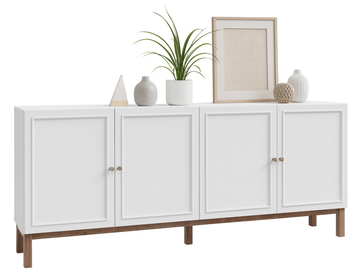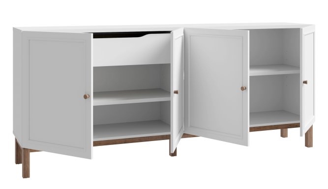 Subtelna elegancja, delikatne zdobienia i harmonia kolorów sprawiają, że ta czterodrzwiowa komoda Penkridge wprowadza do wnętrza wyjątkowy spokój i przytulność. Jasnoszary odcień Secret Grey doskonale współgra z naturalnym ciepłem dębu szlachetnego, tworząc ponadczasowe połączenie, które odnajdzie się zarówno w aranżacjach klasycznych, jak i nowoczesnych. Mebel przyciąga uwagę prostą formą i ozdobnymi ramkami na frontach, które nadają mu subtelny, prowansalski charakter. To idealny wybór dla osób ceniących funkcjonalność zamkniętą w eleganckiej formie.