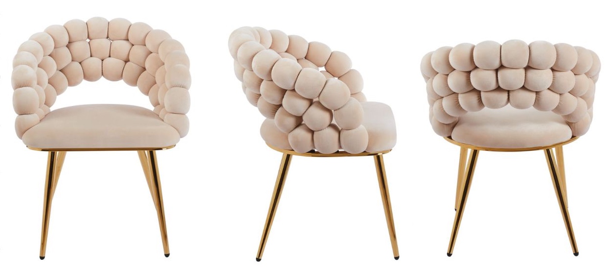 Krzesła do jadalni K20-FX tapicerowane sa tkaniną typu velvet. Miękka tapicerka podkreśla luksusowy charakter krzesła i pięknie współgra ze złotymi nogami z metalu. Dzięki pięciu wariantom kolorystycznym krzesło można dopasować zarówno do nowoczesnych, jak i klasycznych wnętrz. Na zdjęciach K20-FX świetnie prezentuje się przy stołach ST24-FX, tworząc harmonijne zestawienia do jadalni i salonu.