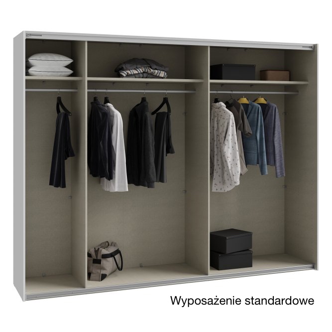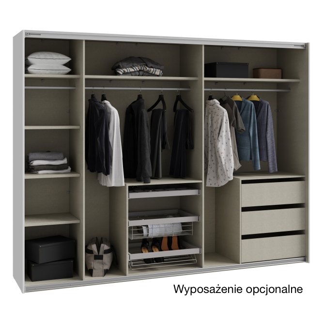 Nowoczesna i pojemna szafa przesuwna Nektarius to idealne rozwiązanie dla osób ceniących funkcjonalność oraz elegancki minimalizm. Jej subtelny odcień Secret Grey wprowadza do wnętrza spokój i harmonię, jednocześnie nadając całości nowoczesnego charakteru. Prosta forma i gładkie fronty sprawiają, że szafa doskonale wpisuje się w aranżacje w stylu skandynawskim, loftowym czy klasycznie nowoczesnym.