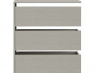 Szafa na ubrania Nektarius została wykonana z laminowanej płyty wiórowej. Wnętrze podzielono na trzy funkcjonalne sekcje - z półkami, drążkami oraz przestrzenią dolną do przechowywania większych przedmiotów. Jasnoszary dekor Secret Grey w połączeniu z prostą formą frontów podkreśla nowoczesny styl mebla, który świetnie komponuje się z różnymi kolorami ścian i dodatków.