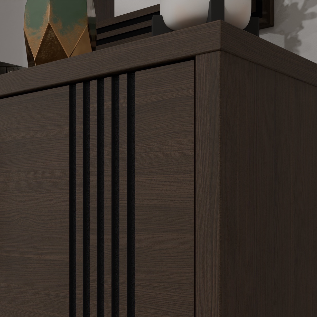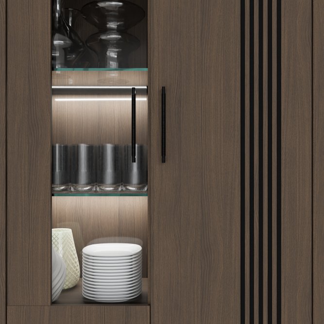 Każde wnętrze potrzebuje mebla, który doda mu elegancji i charakteru, a jednocześnie pomoże w zachowaniu porządku. Witryna dwudrzwiowa Eufemius 621 to propozycja dla osób, które cenią nowoczesny styl połączony z funkcjonalnością. Subtelne, pionowe lamele na froncie tworzą wyjątkowy efekt dekoracyjny, który przyciąga uwagę i nadaje pomieszczeniu głębi. Przeszklona część mebla pozwala efektownie wyeksponować ulubione ozdoby, zastawę czy pamiątki rodzinne, a zamknięte półki zapewniają miejsce na wszystko, co chcesz mieć pod ręką, lecz niekoniecznie na widoku. To połączenie praktyczności i estetyki, które sprawia, że Eufemius 621 odnajdzie się w wielu aranżacjach - od klasycznych po współczesne.