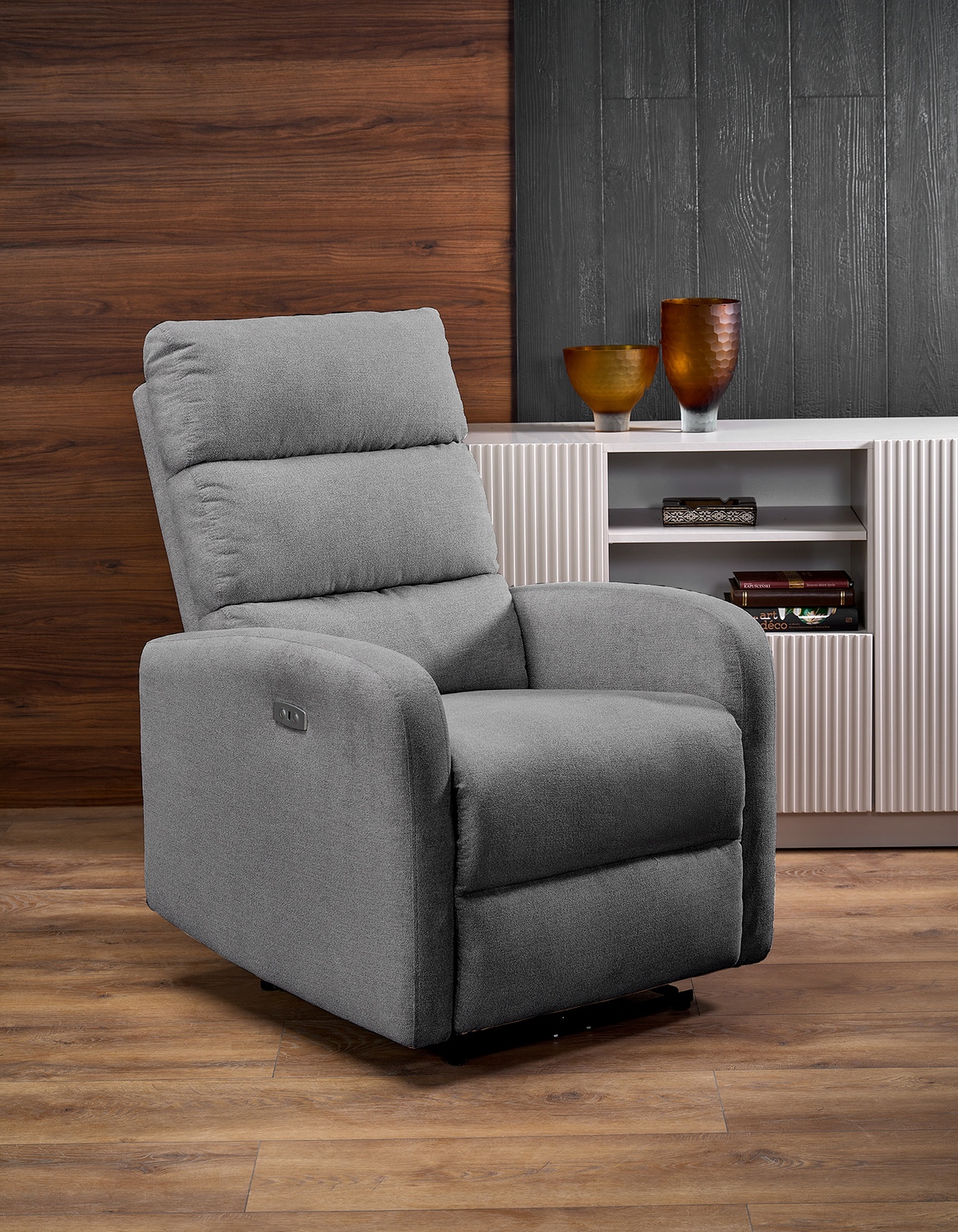 Fotele wypoczynkowe Carinio tapicerowane są w całości tkaniną materiałową. Ta miękka, przyjemna w dotyku tapicerka dostępna jest w dwóch eleganckich kolorach: popielatym i jasnym beżu, które wpasują się w każde wnętrze.
