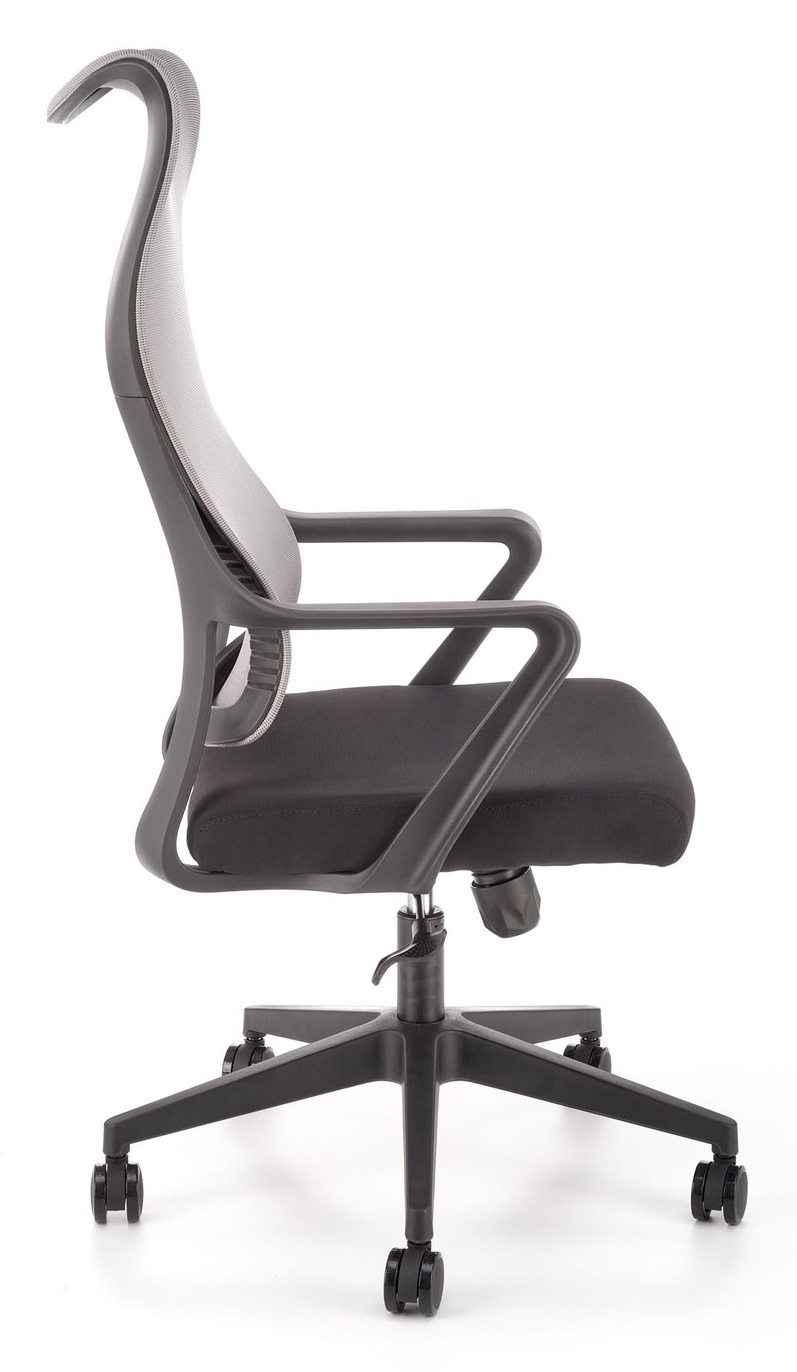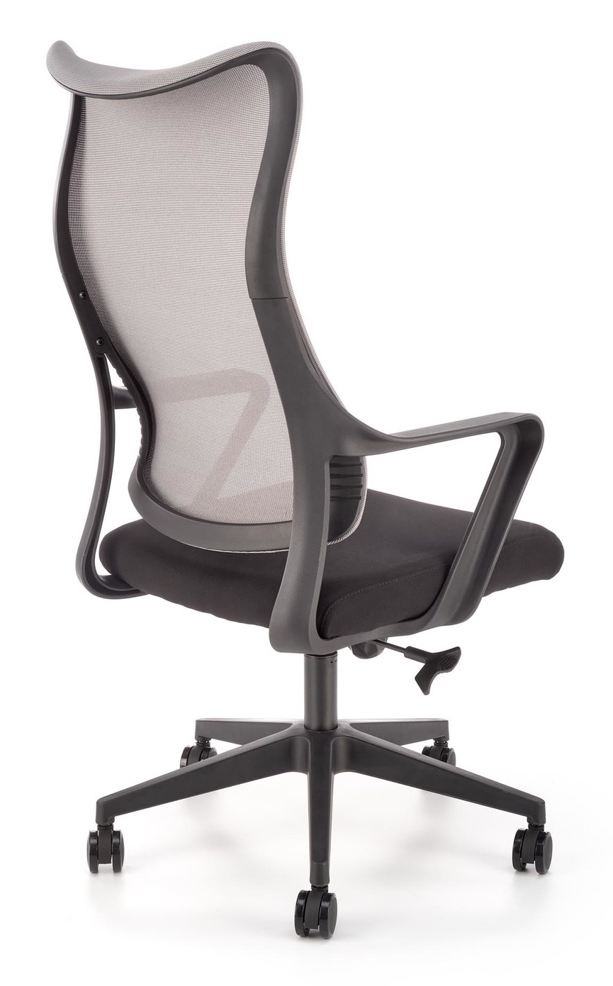 Fotel obrotowy Loreto posiada oparcie wykonane z siatki w kolorze popielatym, siedzisko tapicerowane jest tkaniną w obu przypadkach w kolorze czarnym. Ten model będzie doskonałym wyposażeniem nie tylko nowoczesnego biura, ale i pokoju młodzieżowego.
