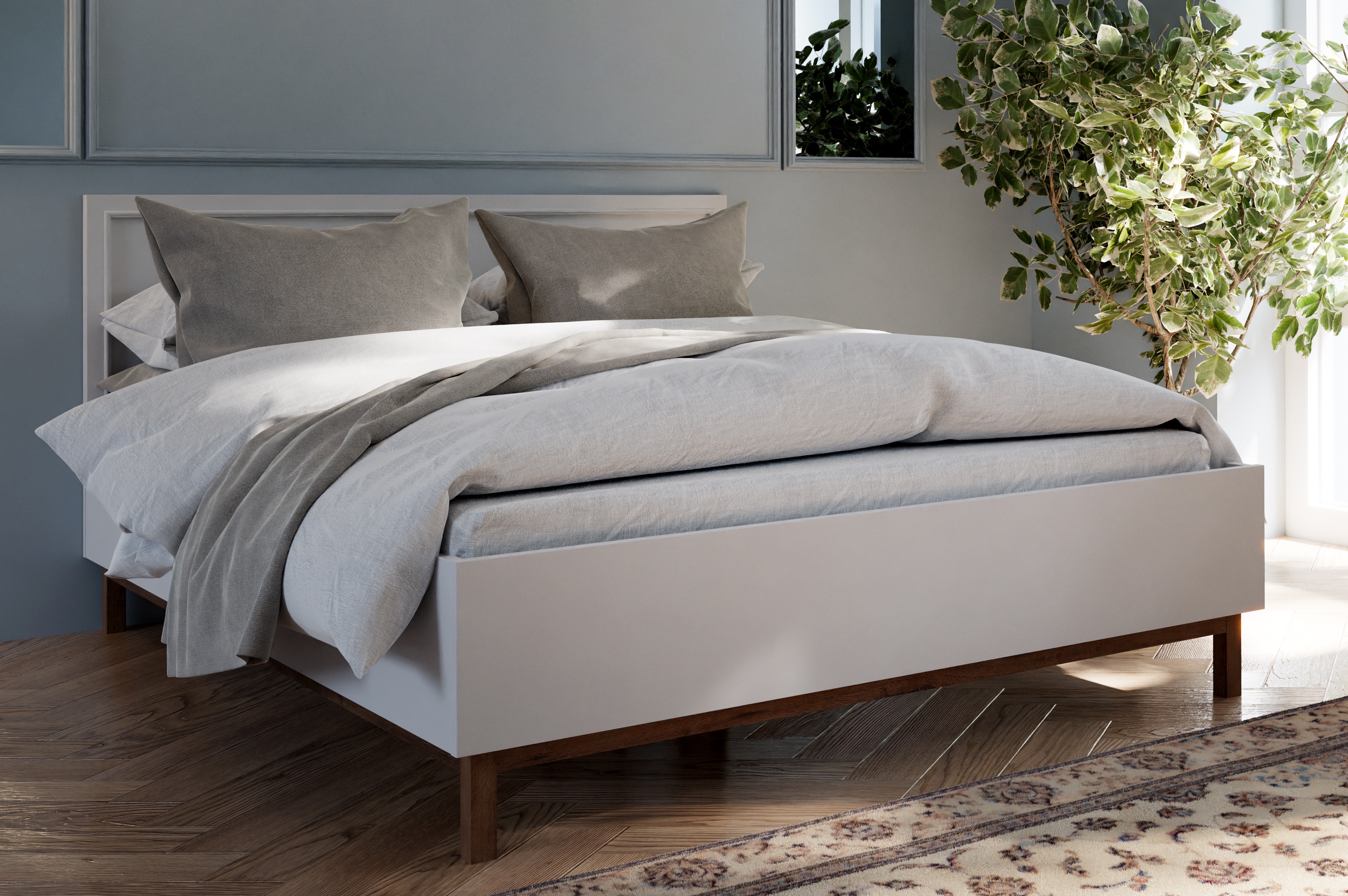 Subtelna elegancja i klasyczna forma sprawiają, że to łóżko Penkridge stanie się centralnym punktem każdej sypialni. Jego delikatne linie i stonowana kolorystyka Secret Grey w połączeniu z ciepłym odcieniem dębu szlachetnego wprowadzają do wnętrza przytulny, harmonijny klimat. Charakterystyczna ramka na zagłówku, inspirowana sztukaterią, podkreśla wyrafinowany styl mebla, a jednocześnie wpisuje się w aktualne trendy aranżacyjne. To propozycja dla osób, które poszukują mebla o ponadczasowym wyglądzie, tworzącego atmosferę spokoju i relaksu.