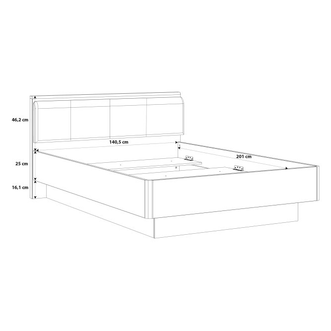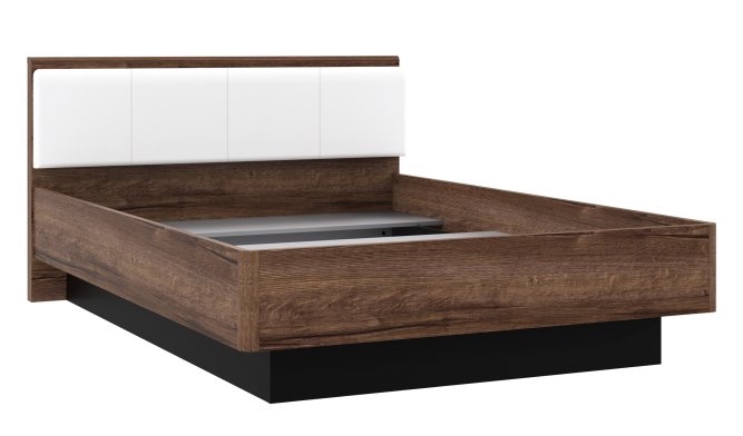 Korpus łóżka młodzieżowego Raven wykonano z laminowanej płyty wiórowej w dekorze drewnopodobnym, który doskonale odwzorowuje strukturę i kolor naturalnego drewna. Obrzeże ABS skutecznie zabezpiecza krawędzie i podkreśla dopracowane detale. Zagłówek został wykończony ekoskórą w kolorze białym (X73) oraz wypełniony pianką PU T21, dzięki czemu stanowi wygodne oparcie do czytania lub odpoczynku. Całość dopełnia nowoczesna, czarna podstawa, która dodaje meblowi lekkości i współczesnego charakteru.