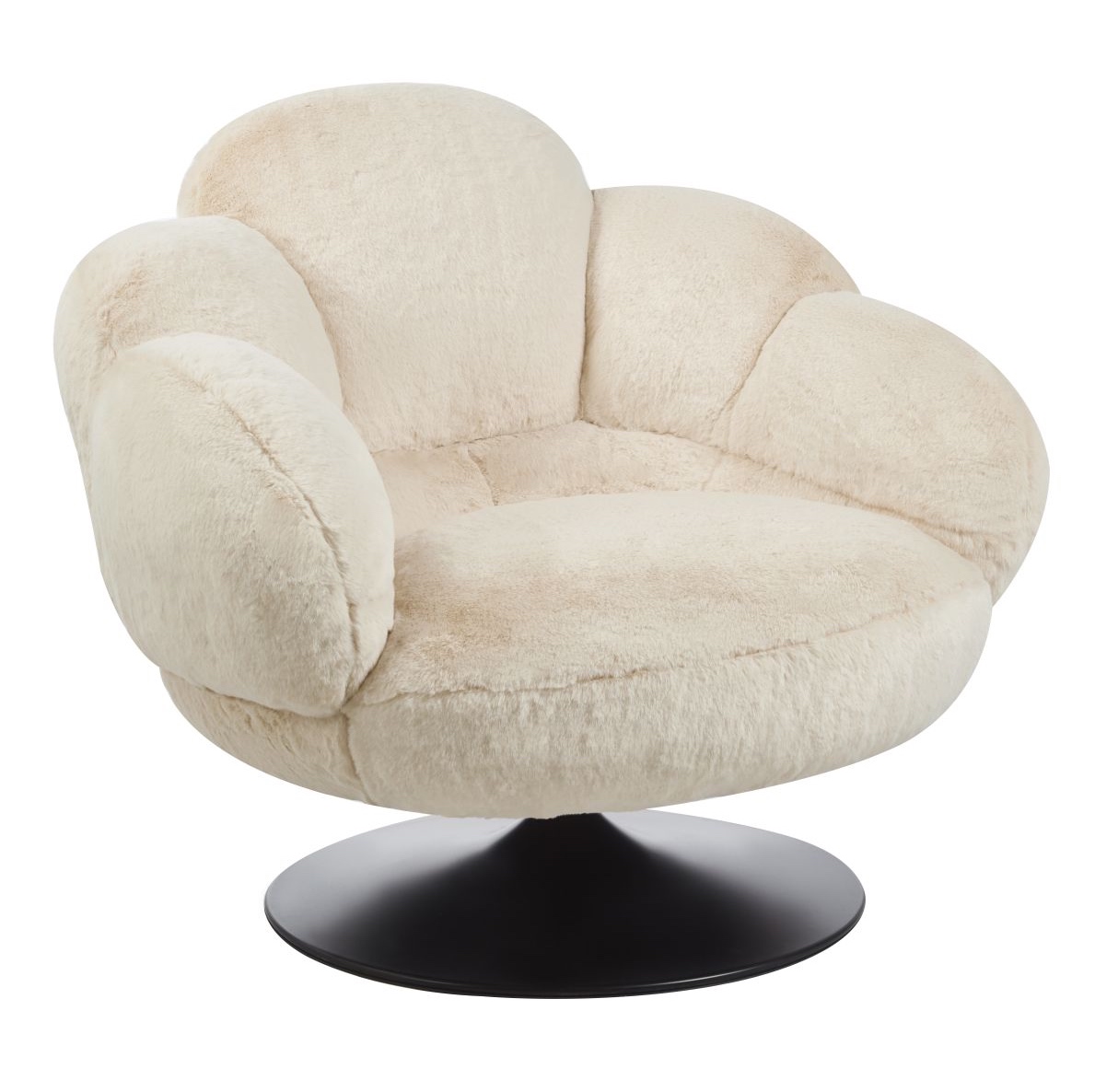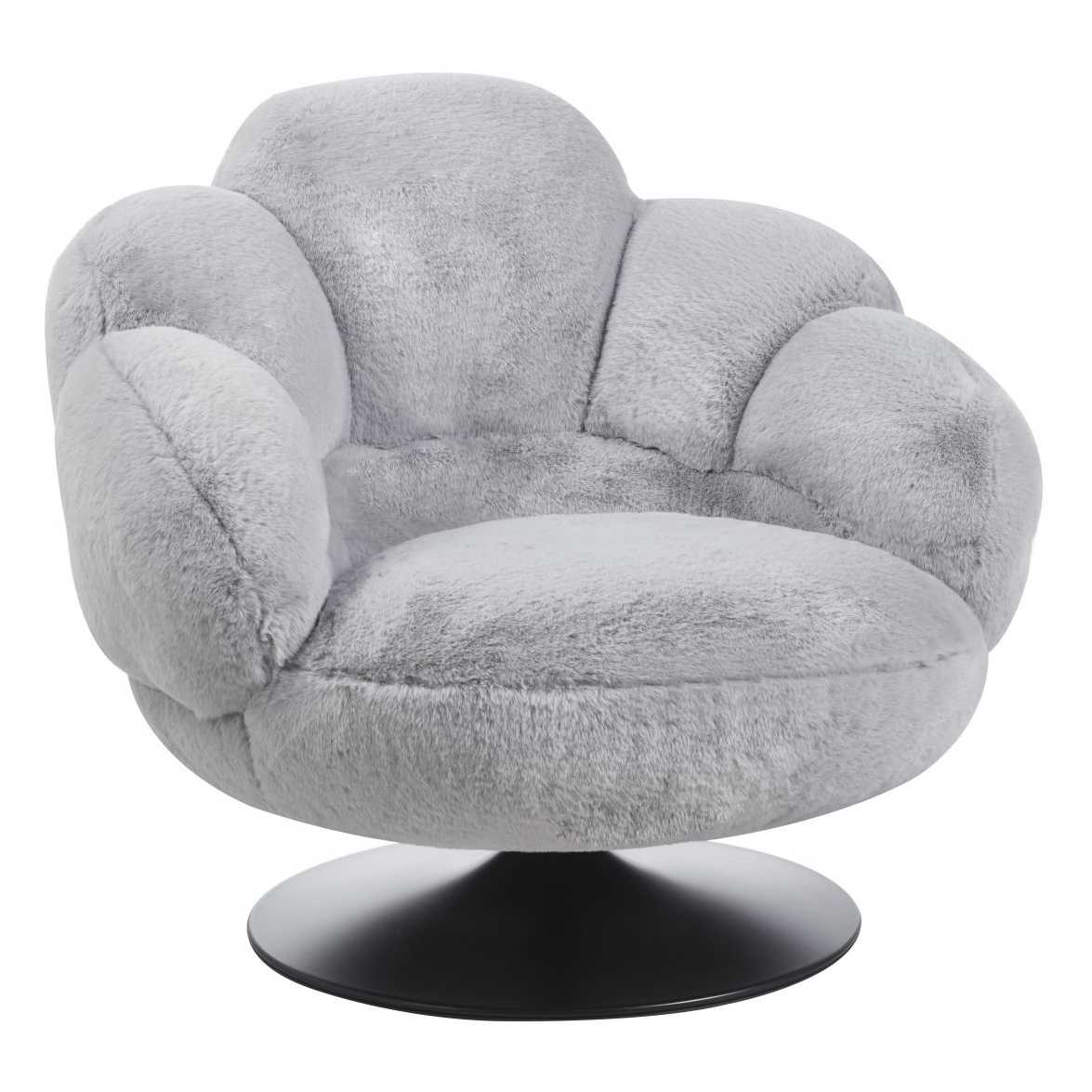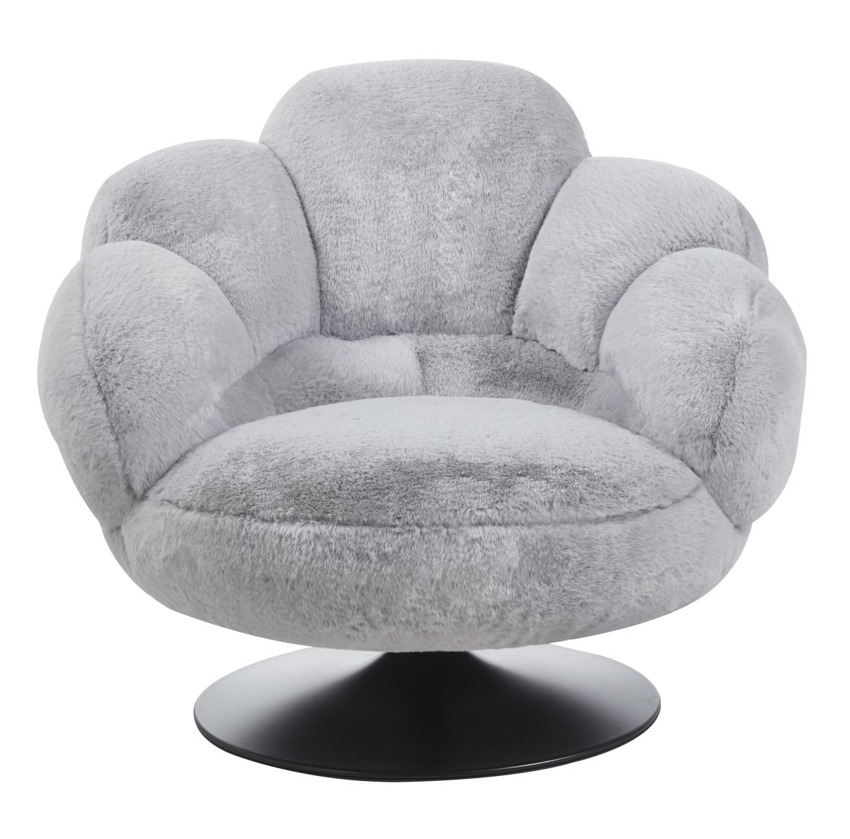 Fotele wypoczynkowe FR8-FX tapicerowane są tkaniną futerkową w kolorze beżowym i szarym do wyboru. Metalowy talerz w czarnym wykończeniu dodaje nowoczesnego charakteru i stanowi solidne oparcie dla szerokiego, miękko wyściełanego siedziska.