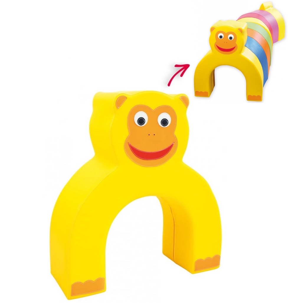 Tunel rehabilitacyjny Tubblo w formie wesołej małpki to propozycja, która przyciąga uwagę dzieci i zachęca je do aktywnej zabawy. Kolorowe elementy można łączyć w dowolnych konfiguracjach, tworząc proste lub zakręcone trasy. Dzięki temu tunel staje się nie tylko atrakcją, ale także narzędziem wspierającym rozwój koordynacji ruchowej, równowagi i orientacji przestrzennej najmłodszych.