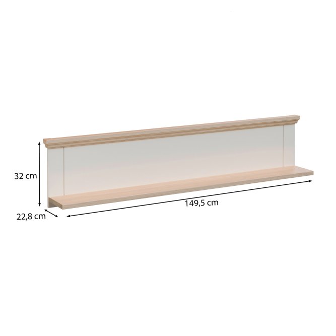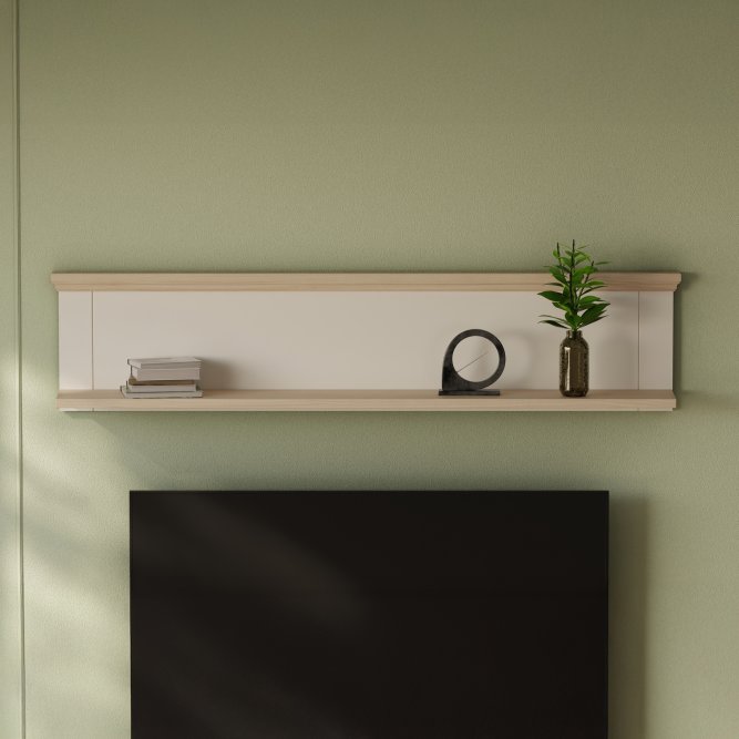 Subtelna, stylowa i niezwykle praktyczna - półka Pontypool to idealny dodatek, który dopełni aranżację salonu, jadalni lub sypialni! Jej prosta forma z delikatnym profilowaniem wprowadza do wnętrza lekkość i harmonię, jednocześnie stanowiąc eleganckie tło dla dekoracji, książek lub drobnych pamiątek. Jasne wybarwienie w połączeniu z naturalnym odcieniem drewna doskonale komponuje się z meblami z tej samej kolekcji, tworząc spójną, przytulną przestrzeń w stylu skandynawskim lub prowansalskim. Pontypool to półka, która łączy funkcjonalność z dekoracyjnym wdziękiem.