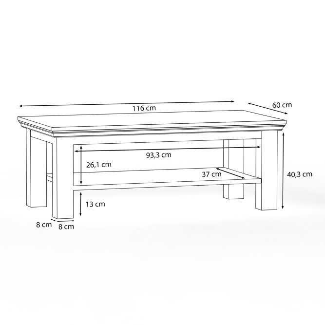 Wymiary (szerokość / głębokość / wysokość) | 116 / 60 / 43,4 cm |