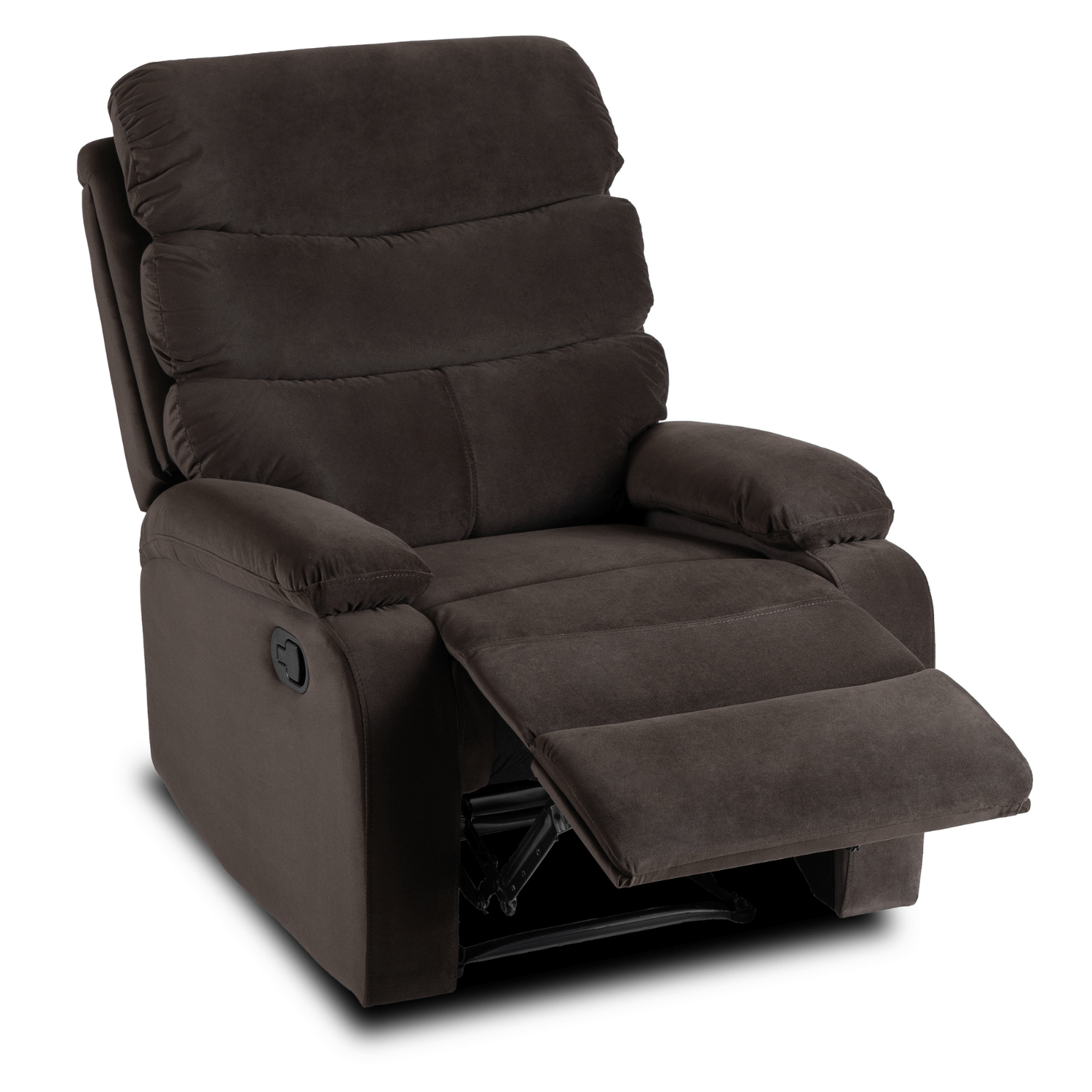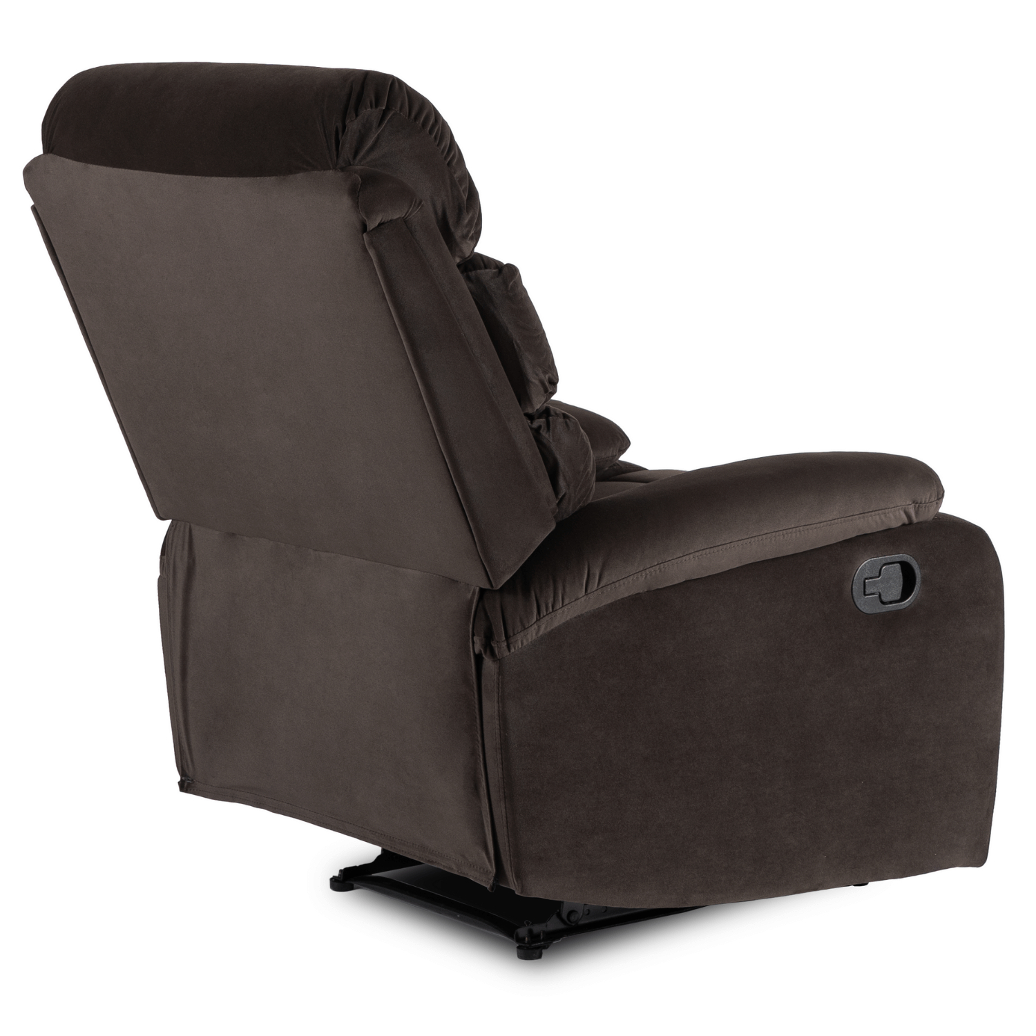 Fotel Kobe obity jest eleganckim brązowym welurem, który dodaje wnętrzu ciepła i ponadczasowej elegancji. Delikatnie połyskująca tkanina welurowa podkreśla wyjątkowy charakter mebla, sprawiając, że staje się on również dekoracyjnym elementem wyposażenia. Konstrukcja opiera się na solidnym stelażu, który gwarantuje stabilność użytkowania. Dzięki bocznej dźwigni fotel można łatwo rozłożyć, wybierając pozycję najbardziej odpowiadającą chwili - od wygodnego siedzenia, przez półleżenie, aż po pełne rozłożenie.