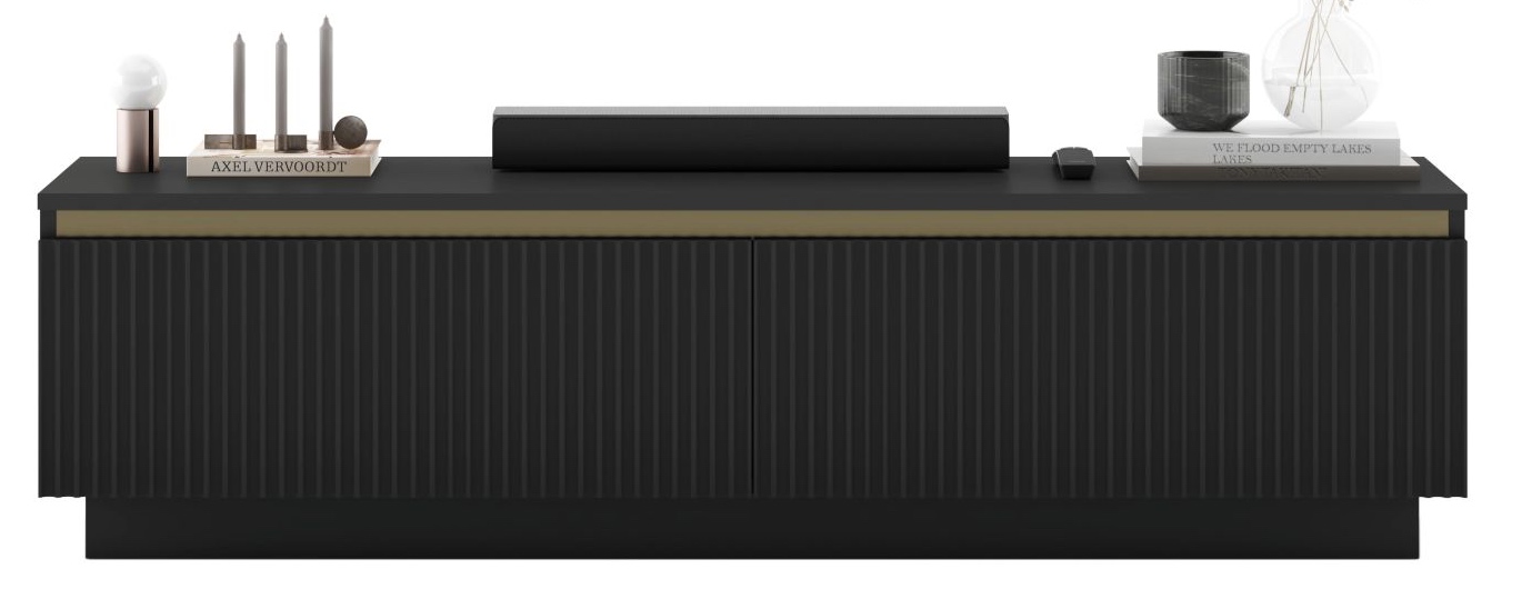 Korpus szafki RTV Selene wykonany jest z płyty laminowanej, natomiast ryflowany front z płyty MDF - całość wykończona jest włoską folią, która daje efekt głębokiego matu. Jej nowoczesny wygląd sprawia, że staje się centralnym punktem aranżacji, a głęboka czerń z ryflowanym wykończeniem dodaje wnętrzu elegancji i nuty luksusu. Ryflowana szafka RTV Selene w kolorze czarnym to wybór dla osób, które chcą połączyć funkcjonalność z nowoczesnym stylem.