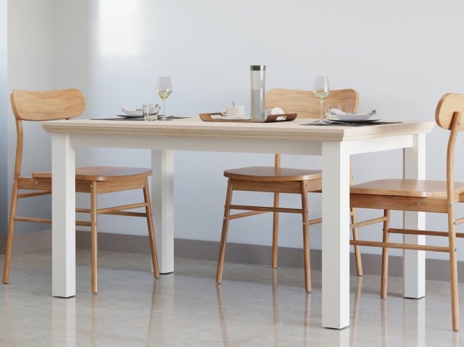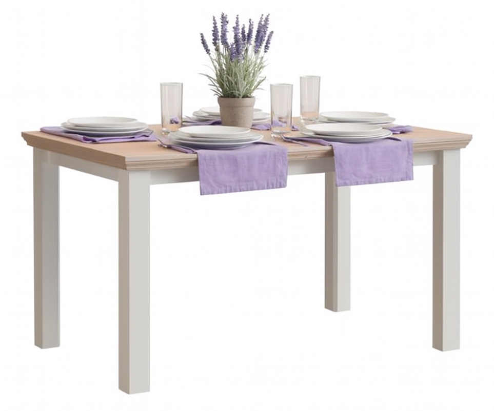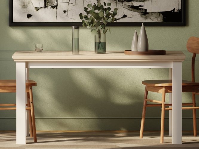 Każde spotkanie przy stole może stać się wyjątkowe, gdy wybierzesz mebel, który łączy w sobie funkcjonalność i subtelną elegancję. Stół rozkładany Pontypool to propozycja dla osób ceniących klasyczny styl z nutą nowoczesności! Jego prosty kształt i delikatne frezowanie krawędzi sprawiają, że doskonale wpisuje się w aranżacje prowansalskie, skandynawskie i klasyczne. Jasny blat w dekorze drewna wprowadza do wnętrza przytulność, a biały korpus optycznie je rozjaśnia i nadaje mu lekkości.