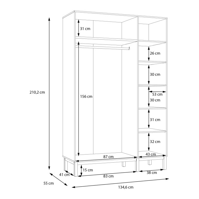 Wymiary (szerokość / głębokość / wysokość) | 134,6 / 55 / 210,2 cm |