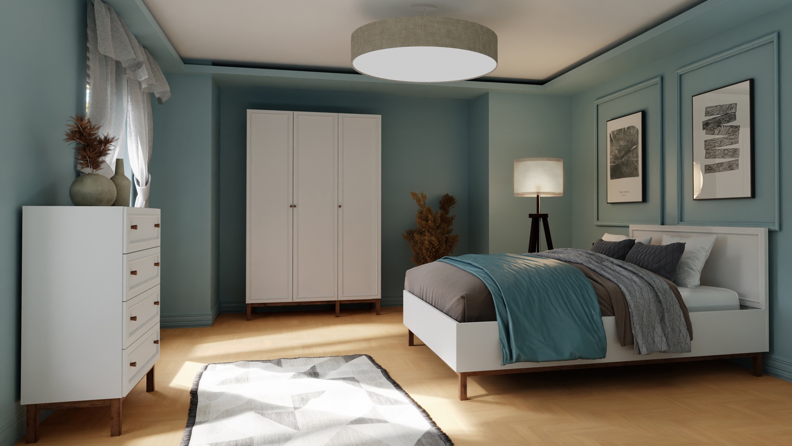 Subtelne wzornictwo i ponadczasowa kolorystyka sprawiają, że szafa Penkridge doskonale dopełni wystrój eleganckiej sypialni lub garderoby. Jasny odcień Secret Grey nadaje wnętrzu lekkości, a podstawa w dekorze dębu szlachetnego wprowadza ciepło i naturalny akcent. Klasyczne, frezowane fronty z delikatnymi ramkami przypominającymi sztukaterię oraz drewniane uchwyty w formie gałek podkreślają styl prowansalski i dodają całości wyjątkowego uroku.