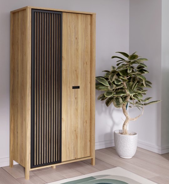 Postaw na szafy ubraniowe z serii Jytana i wprowadź do swojego wnętrza stylową równowagę między nowoczesnym designem a naturalnym ciepłem drewna!
