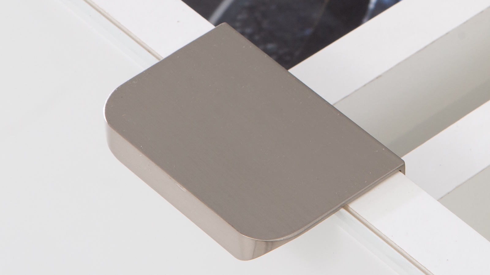 Korpus wiszącej szafki Poole wykonano z białej, laminowanej płyty wiórowej. Front wykończono szkłem Optiwhite, które dodaje elegancji i podkreśla nowoczesny charakter szafki. Obrzeża zostały zabezpieczone materiałem ABS, zwiększającym estetykę i funkcjonalność mebla. Całość uzupełnia metalowy uchwyt w kolorze stali szlachetnej, który dodaje całości subtelnego akcentu. Połączenie tych materiałów sprawia, że szafka jest jednocześnie elegancka, praktyczna i idealnie wpisuje się w aktualne trendy wnętrzarskie.
