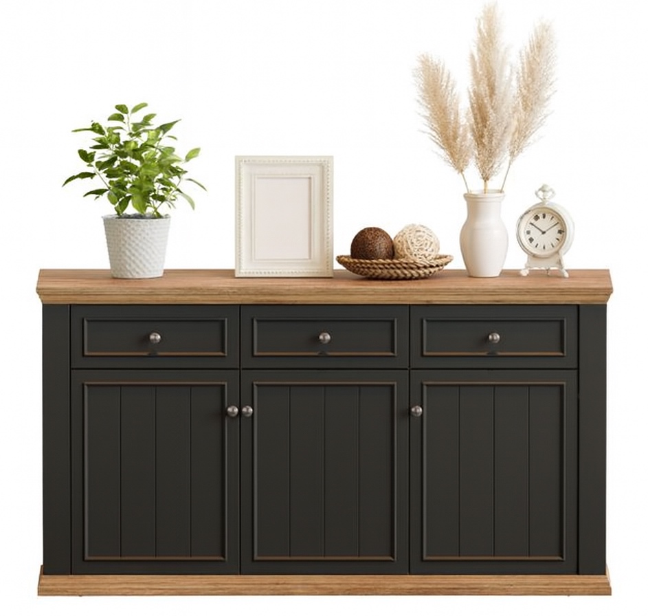 Przytulne wnętrza wymagają mebli, które łączą funkcjonalność z elegancją i odrobiną charakteru. Komoda Pontypool to idealna propozycja dla osób ceniących styl, porządek i praktyczne rozwiązania. Jej wyrazisty wygląd oparty na kontrastowym zestawieniu ciemnych frontów z ciepłym odcieniem drewna dodaje wnętrzu głębi i przytulności. To mebel, który sprawdzi się zarówno w przestronnych, jak i bardziej kameralnych pomieszczeniach, tworząc elegancką strefę przechowywania. Pontypool to synonim prowansalskiego designu w klasycznej formie.