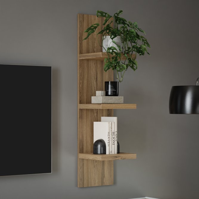 Wąska półka pionowa Lewisville to propozycja dla osób, które cenią połączenie prostoty i elegancji w naturalnym stylu. Wykonana w dekorze Dąb Valencia, doskonale oddaje charakter drewna, wprowadzając do wnętrza przytulny, domowy klimat. Smukła forma półki pozwala na jej montaż nawet w niewielkich przestrzeniach, gdzie liczy się każdy centymetr, a jednocześnie stanowi efektowny element aranżacji.