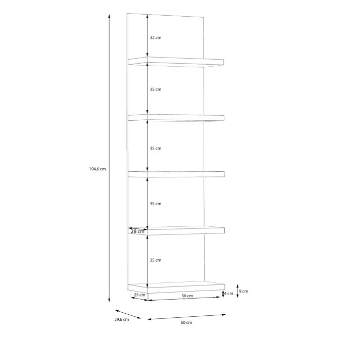 Wymiary (szerokość / głębokość / wysokość) | 60 / 29,6 / 194,6 cm |