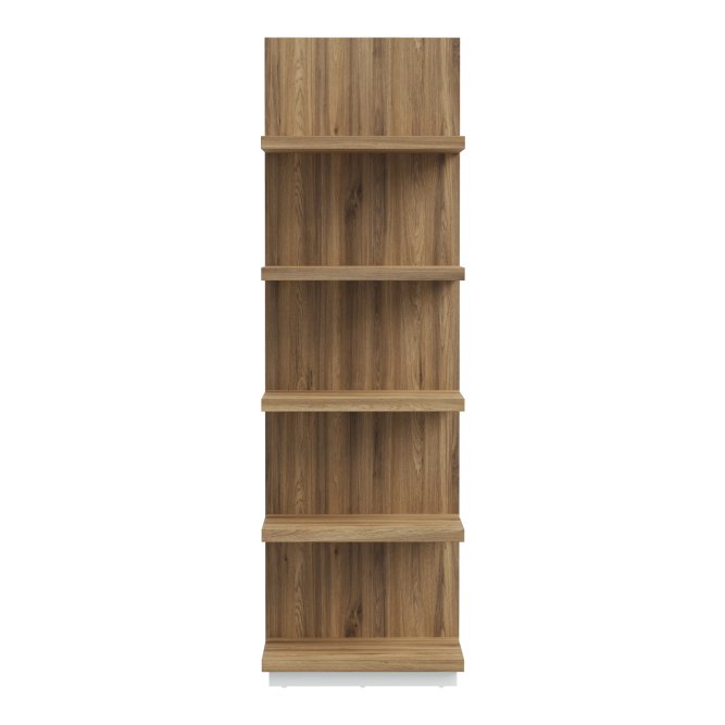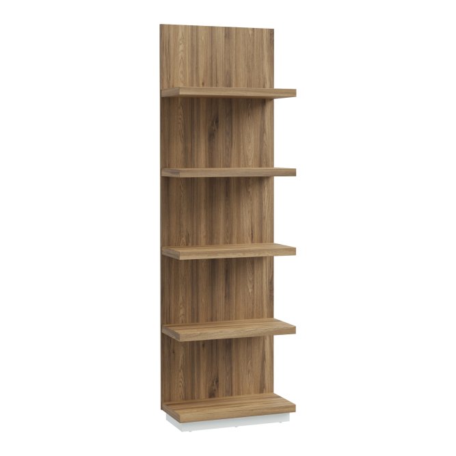 Pionowa półka ścienna Lewisville to nowoczesne rozwiązanie, które łączy funkcjonalność z eleganckim designem. Wykonana w dekorze Dąb Valencia, pięknie odwzorowuje strukturę naturalnego drewna, nadając wnętrzu ciepła i przytulności. Prosty, smukły kształt sprawia, że regał idealnie sprawdza się w pomieszczeniach o różnym metrażu - od przestronnych salonów po niewielkie biura czy przedpokoje.